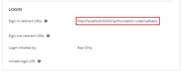 Sign-in redirect URIs: http://localhost:5099/authorization-code/callback