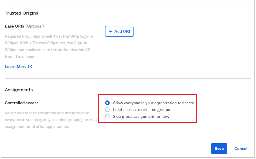 Select Allow everyone in your organization to access radio button under Controlled access (you can select the button according to your actual needs), and then click Save.