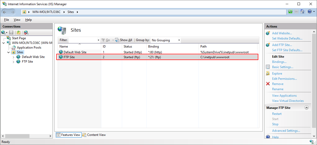 In the previous section, you have selected to enable FTP Service & FTP Extensibility in IIS. Now you can create an IIS FTP site and set the physical path to the web root of the web server.