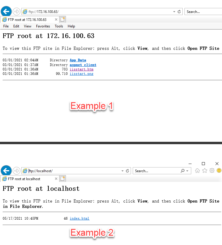 Step 5: Test the FTP site by opening up a Web browser and running the following URL to access the FTP site.