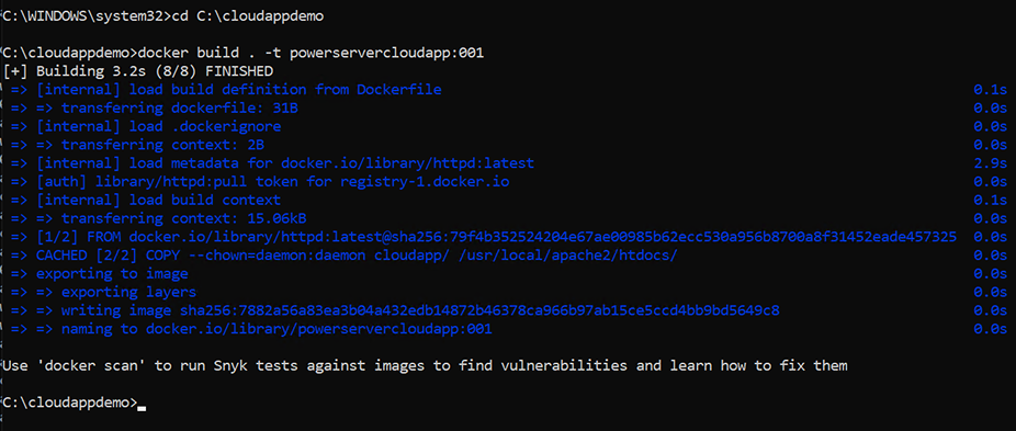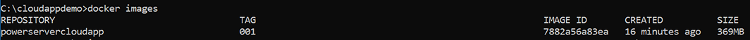 cd C:\cloudappdemo docker build . -t powerservercloudapp:001