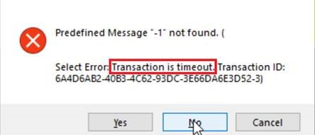 The error message contains "Transaction is timeout" or "Transaction does not exist" — these are PowerServer-specific and have no equivalent in classic C/S PowerBuilder; they signal that a transaction was not closed before the timeout was reached.