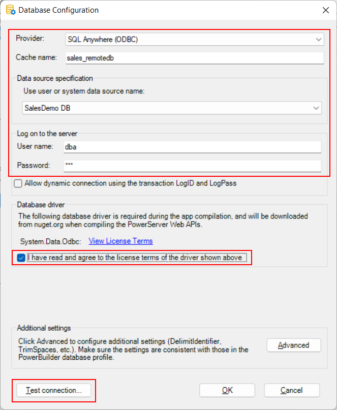 Step 4: Click Test connection to make sure the database can be connected successfully.