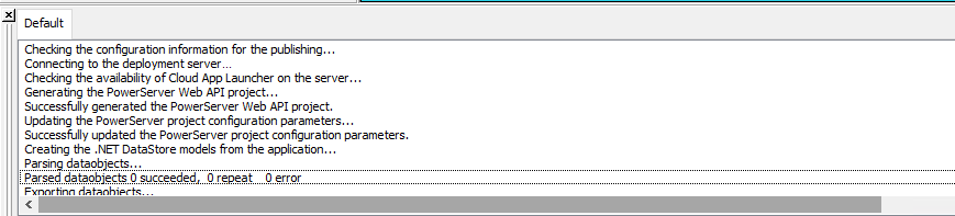When you deploy an application, the output panel shows all the build and deployment actions occurred during the process.
