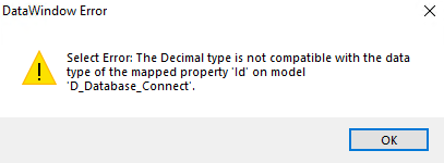 When converting the DataWindow to C# model, with SQL Server, the Id column is of int type: