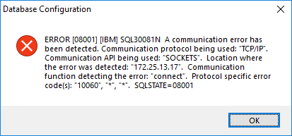 When connecting to the Informix database in the Database Configuration dialog, there is an error message similar to the following: