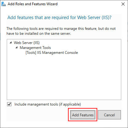 Step 3: Click Add Features when asked whether to add features required for web server.