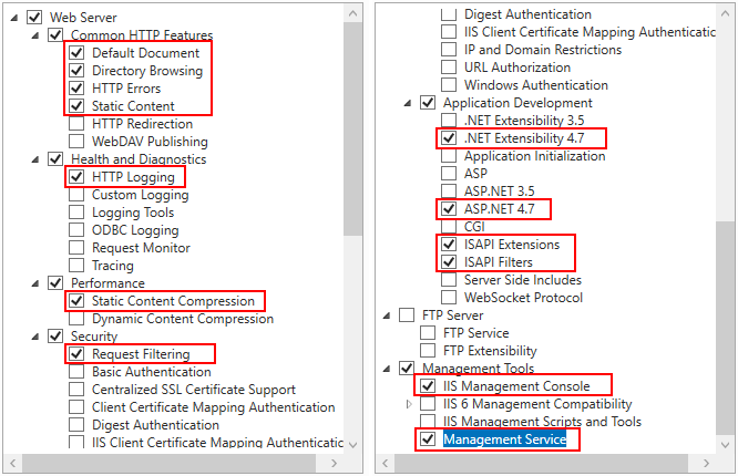 Step 5: Click Next several times until the Role Services section displays. Make sure the following role services are selected.