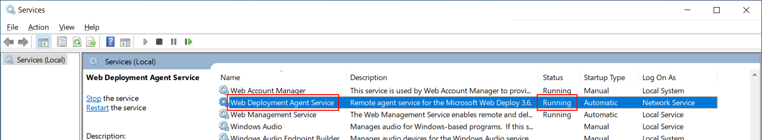 Step 3: When the installation is complete, select Control Panel > System and Security > Administrative Tools > Services, and make sure "Web Deployment Agent Service" is running.