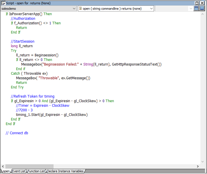 The scripts will trigger the SystemError event when the session or license encounters an error; and if the token is invalid or expires, the scripts will call the f_Authorization function to get the token again.