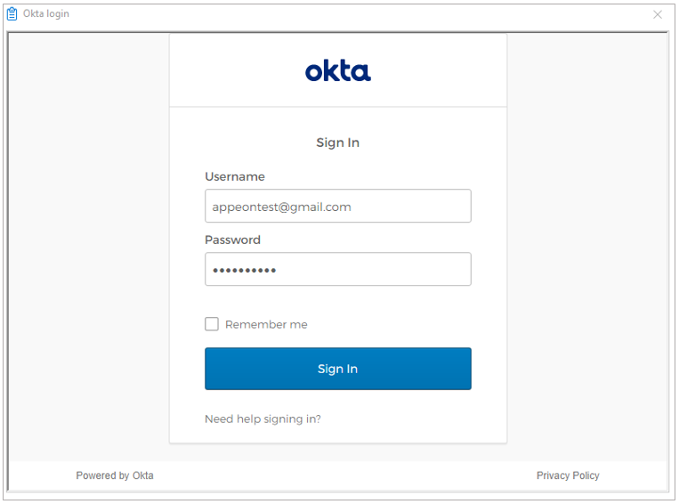 When the application starts, the client ID and secret stored in the application as well as the authorization code from the login window will be sent to Okta to get the token, and when the token expires, the login window displays for the user to input the username and password again.