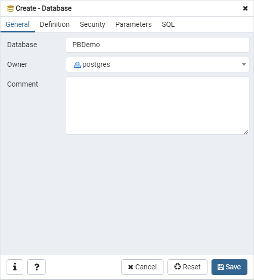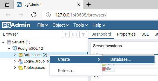 Expand Servers | PostgreSQL, right click Databases, and select Create | Database.