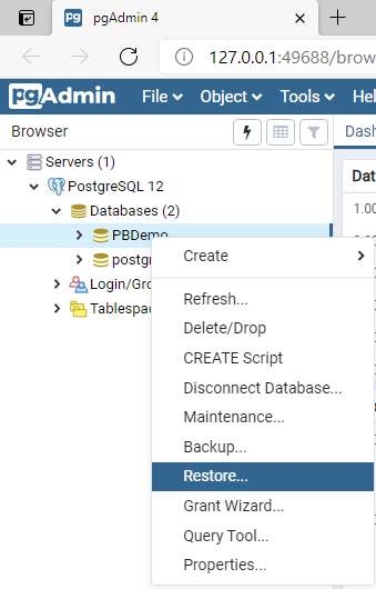 Step 2: Restore and run the database in the management tool for PostgreSQL.