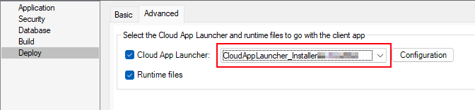 The cloud app launcher and the runtime files will be deployed or packaged along with the application files depending on the settings in Deploy > Basic tab.