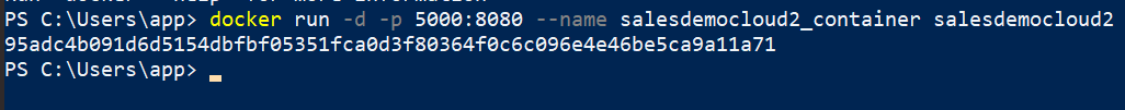 docker run -d -p 5000:8080 --name salesdemocloud2_container salesdemocloud2
