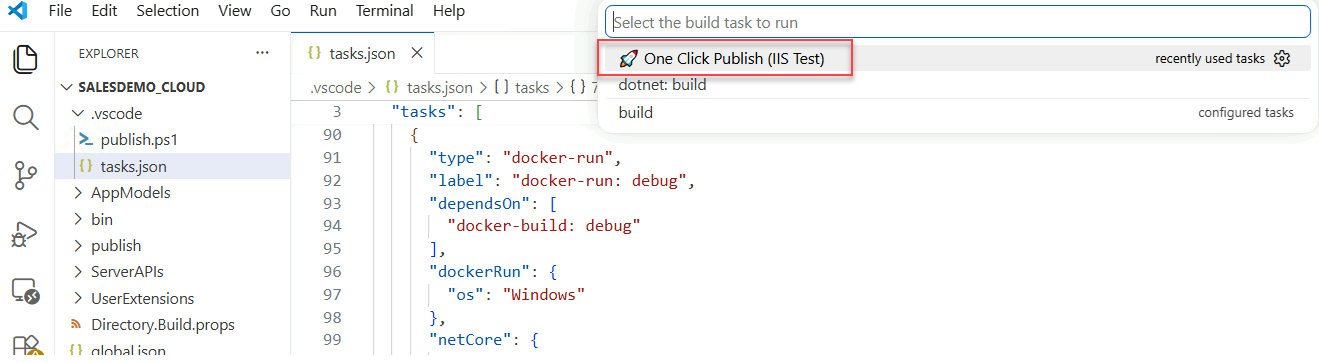 { "version": "2.0.0", "tasks": [ { "label": "🚀 One Click Publish (IIS Test)", "type": "shell", "command": "powershell", "args": [ "-ExecutionPolicy", "Bypass", "-File", ".vscode/publish.ps1" ], "group": "build", "problemMatcher": [] } ] }