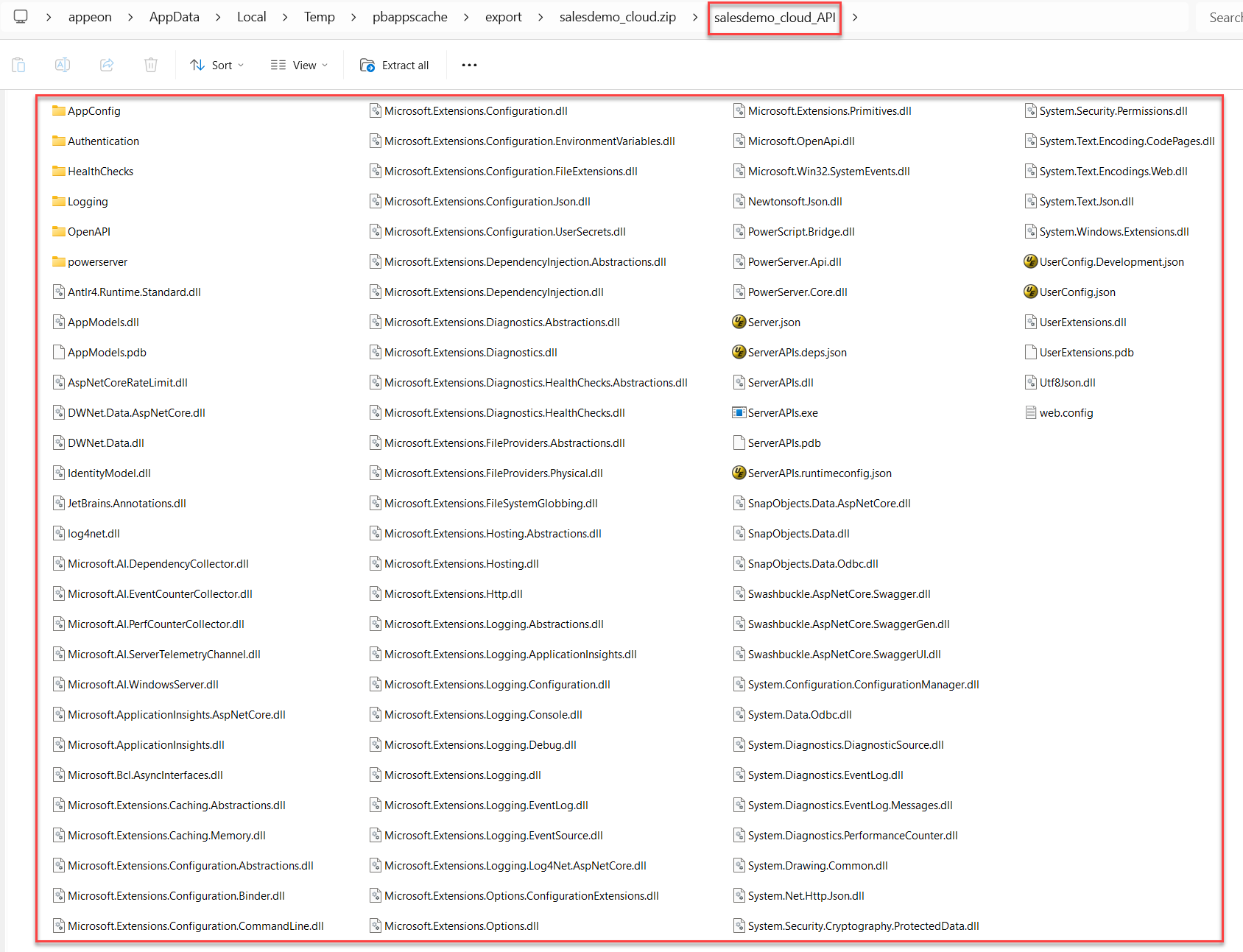 the "[solutionname]_API" folder which contains the compiled PowerServer Web APIs