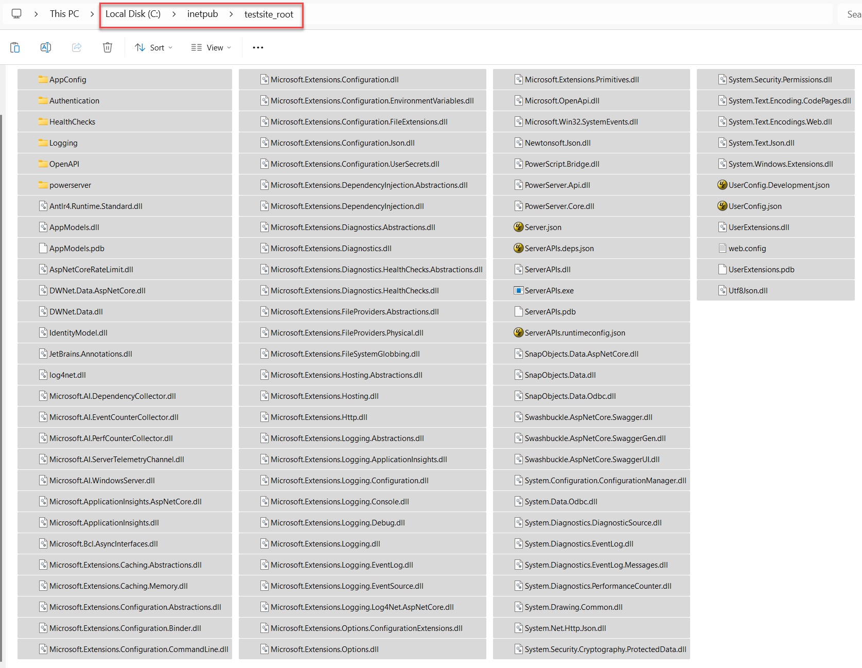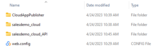 You can also deploy the installable cloud app (including the static files and PowerServer Web APIs) to a folder first and then manually copy the folder's content to the IIS site folder: