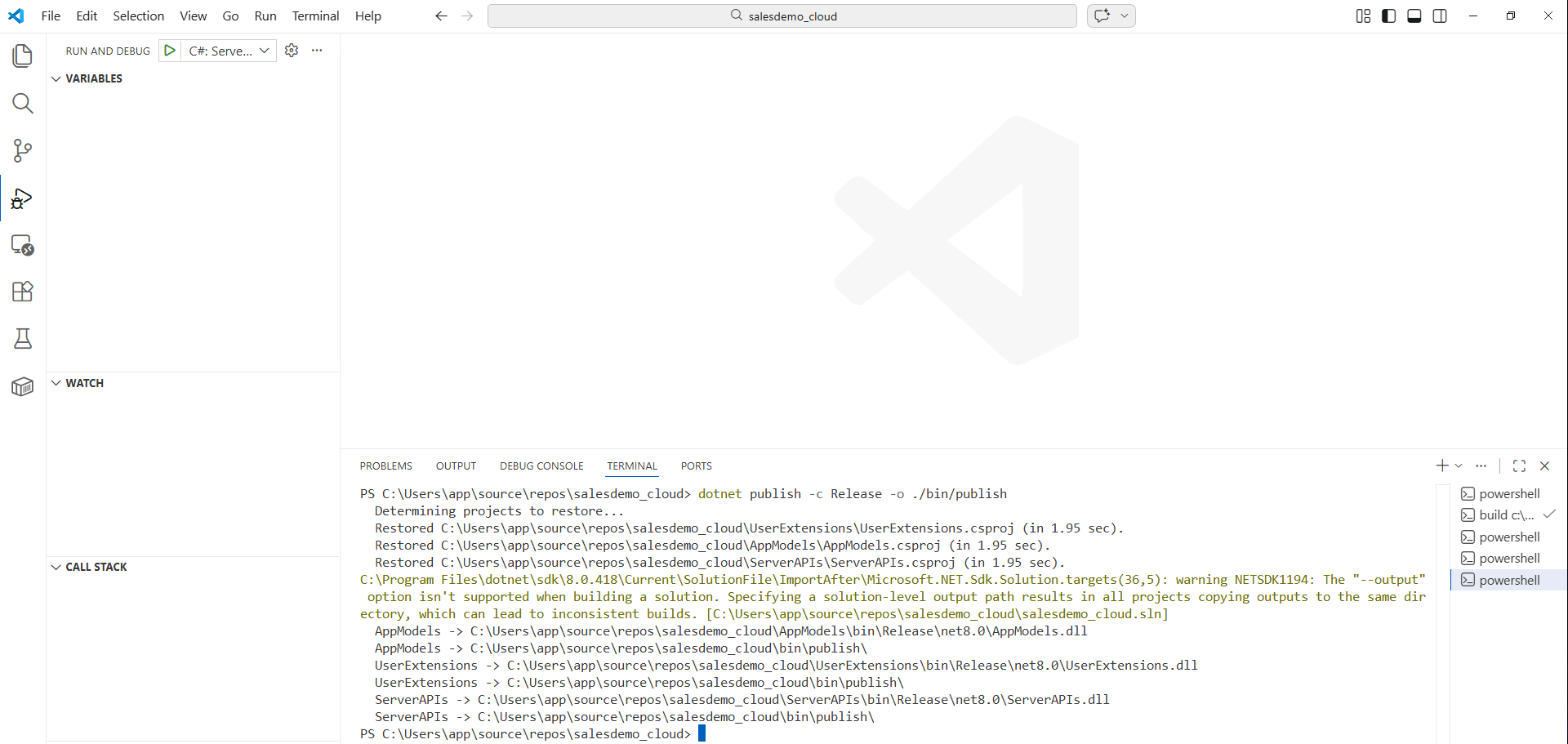 In Visual Studio Code – TERMINAL, run: